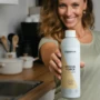 et sa bouteille est en plastique recyclé HDPE 95 % PCR.